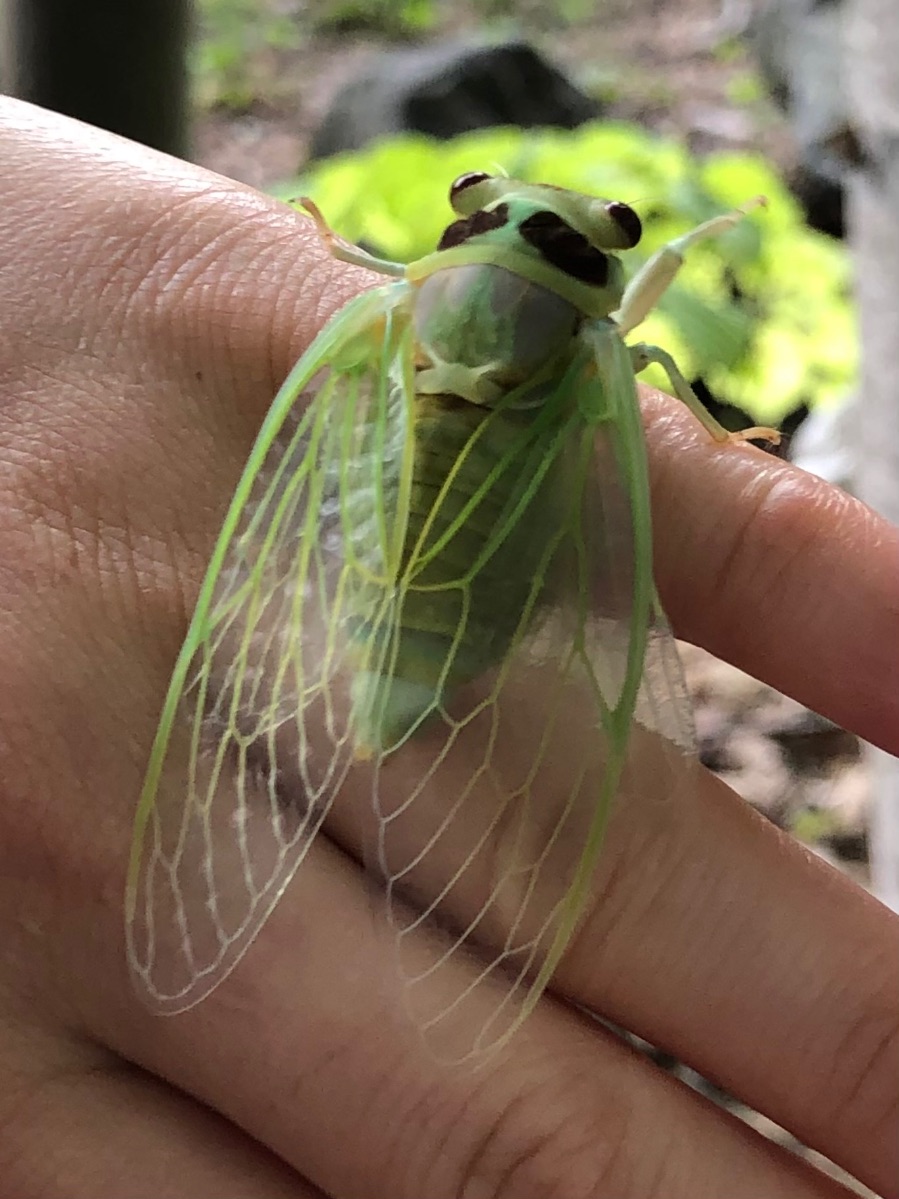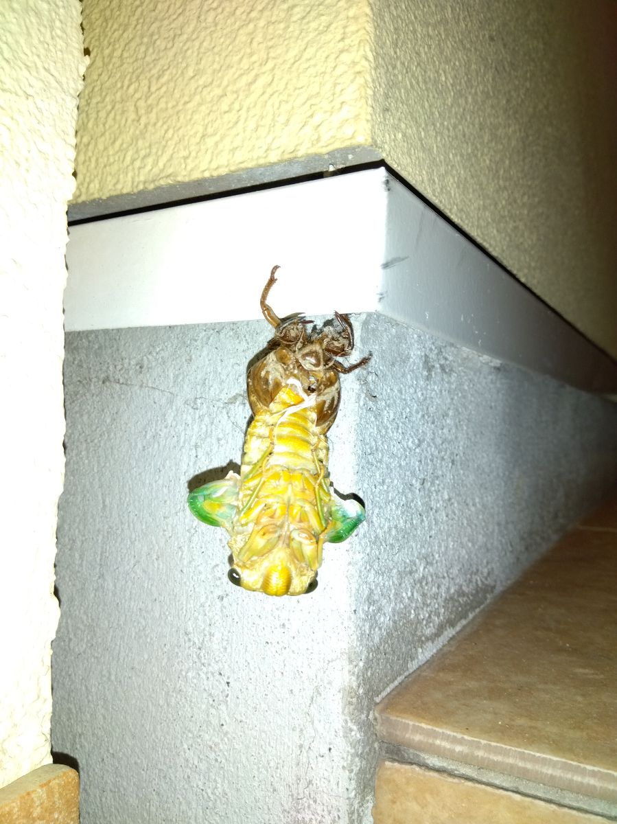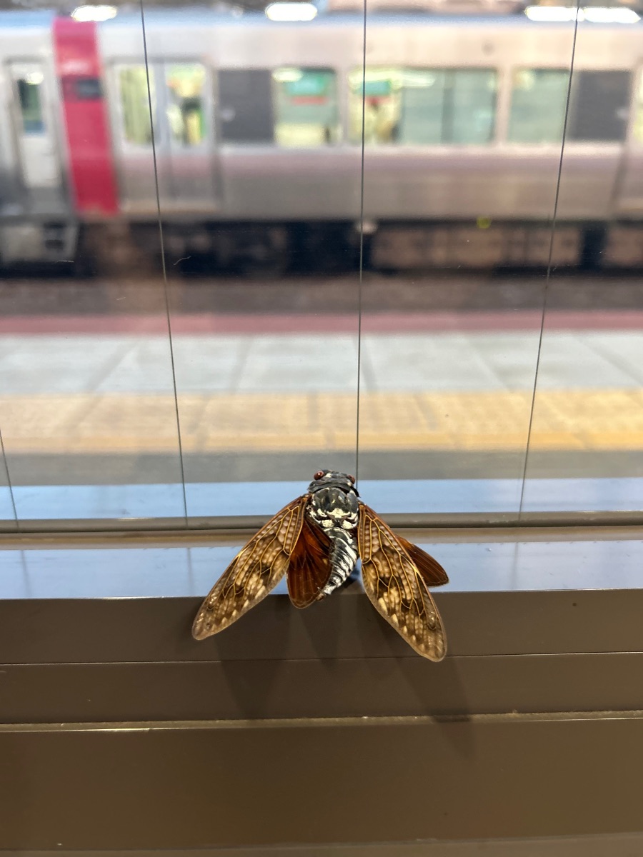 宮島口駅のホームで発見💡待ち時間にセミの観察出来たよ!