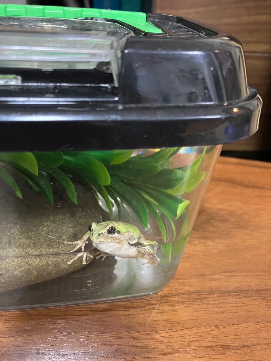 4月ころ、近所の田んぼで捕まえたカエル。庭ににがして3ヶ月たった昨日、まだ庭で生活していました。