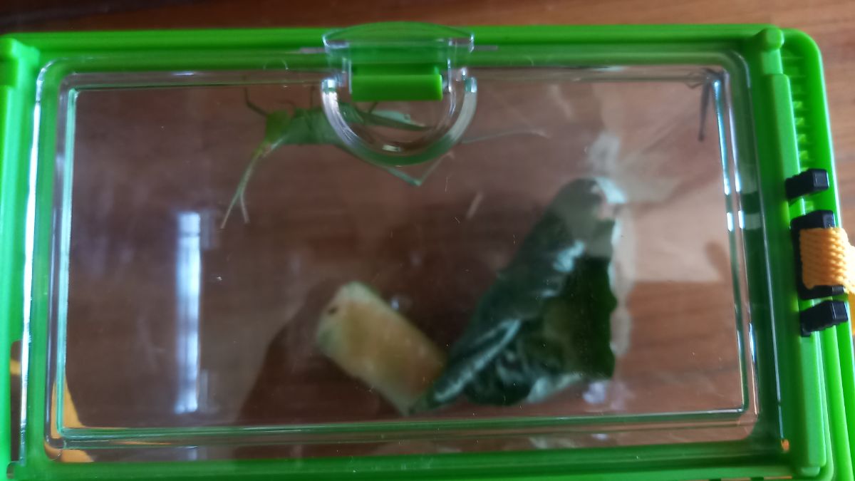 そーっとそーっと近付いて…両手で…パッ💨「やった〜!!」めっちゃ大きくてめっちゃ飛ぶバッタを捕まえました!!