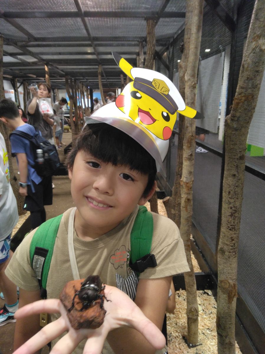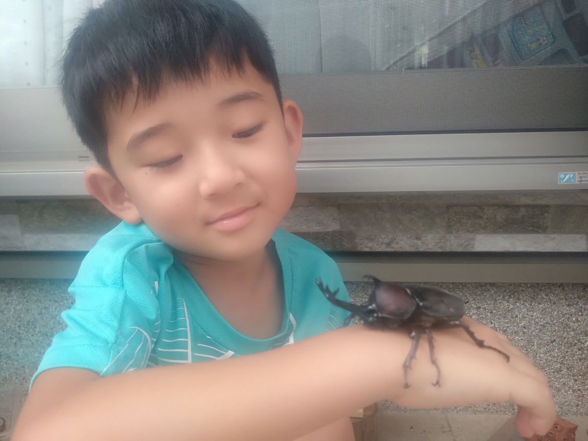夜に森に入り頑張って捕まえたカブトムシ!腕においいて愛おしい〜