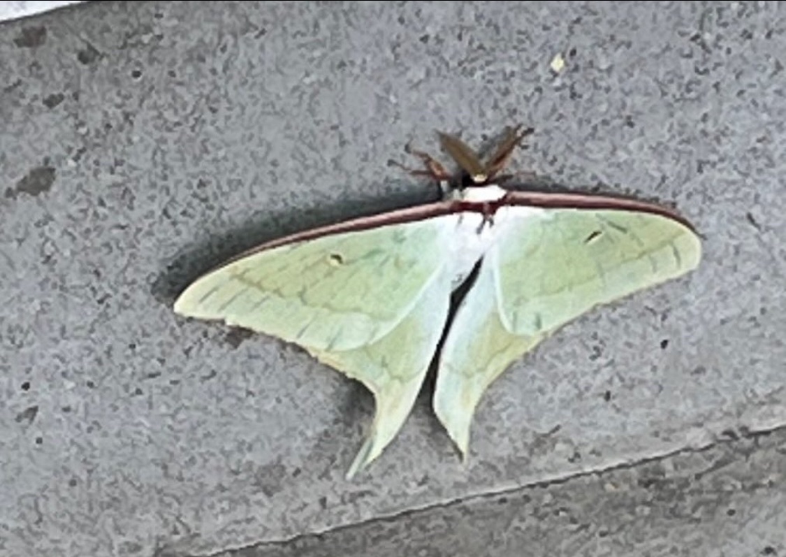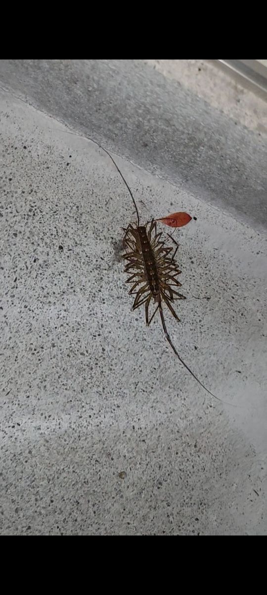 おじいちゃんちにて大きなゲジゲジ出現!大きいからよく体をみれたよ。長いしっぽがあること知らなかったな。そんなゲジに近寄ってきた小さな蛾が…。だから本当はこの写真、蛾を抱き閉めて離さないゲジゲジの写真。