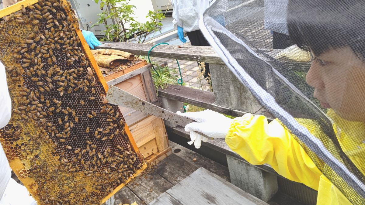セイヨウミツバチの養蜂活動で女王バチの王台をヘラで取りました!