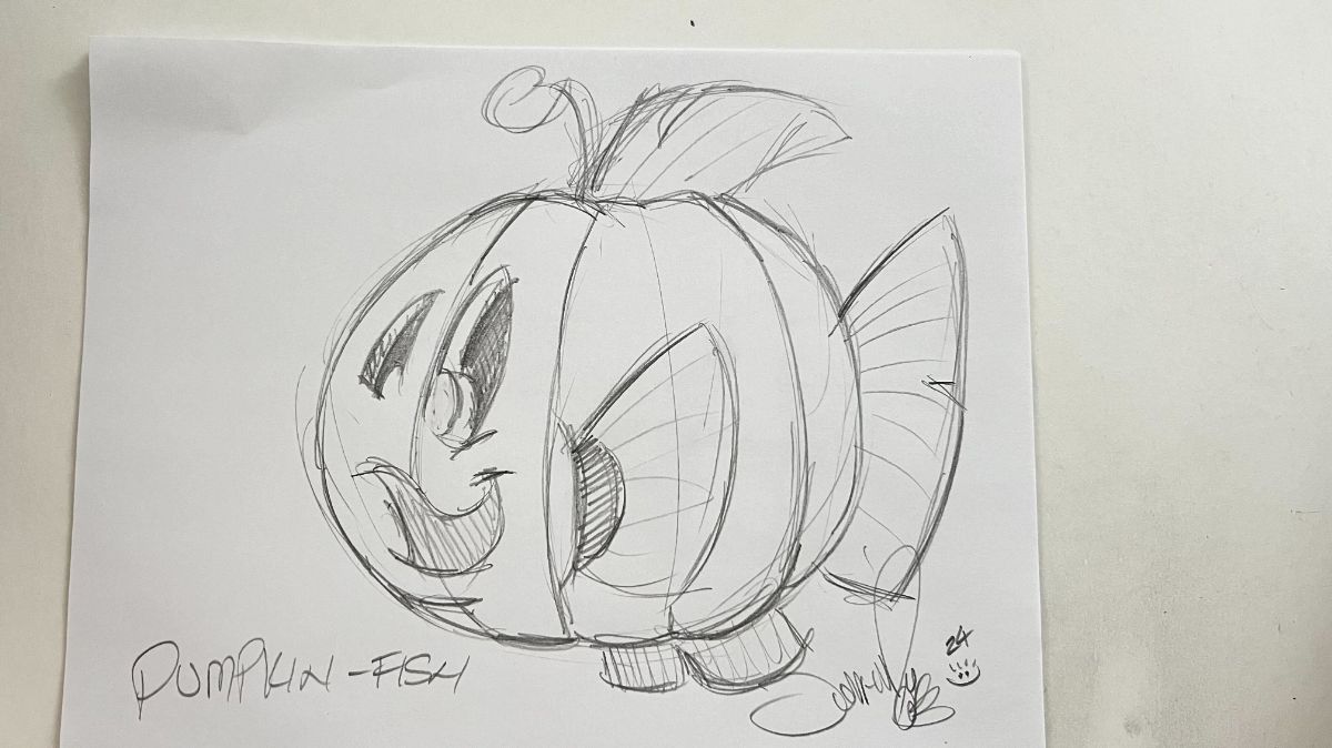 ジョンマークさんのフレンドフィッシュのキャラクターを見つけたので、プリントアウトして貼りました!家族みんなクラフト大好き!
