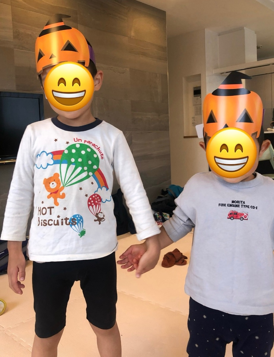 スーパーでもらったハロウィンお面で仮装する仲良し兄弟🎃